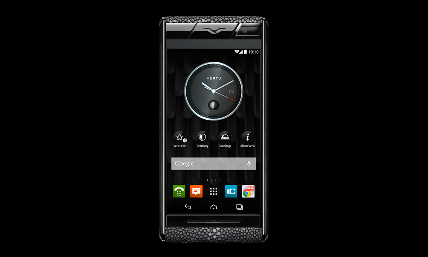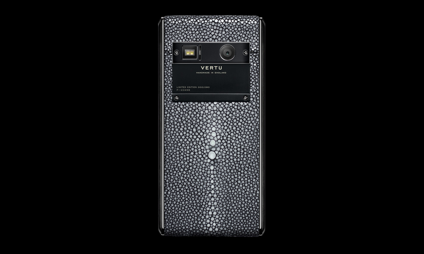 Vertu Aster Stingray Black được làm bằng da cá đuối.Da được lựa chọn cẩn thận và làm bằng tay, trước khi sử dụng được kiểm nghiệm chặt chẽ trong môi trường “ướt và khô” thử nghiệm với 11 hóa chất khác nhau,do đó có sự đàn hồi và tính thẩm mỹ cao.