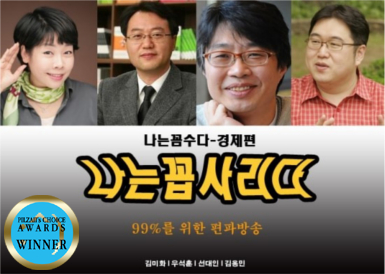 공동 수상으로 〈나는 꼽사리다〉를 선정했다. 작년 수상한 〈나는 꼼수다〉가 이명박을 중심으로 한 정치권과 기득권 세력에 대한 비판적인 이야기를 많이 하느라 필연적으로 정치색과 이념색이 짙어지고 찬반양론을 낳는 부분도 있었으나 나는 꼽사리다의 경우는 비판을 하면서도 좀 더 대안적이고 미래 지향적인 이야기가 많은 데다가 들으면서 반감이나 거부감이 거의 들지 않을 정도로 내가 평소에 품은 사회, 경제, 문화에 대한 생각이나 방향성이 많이 일치한다. 2013년부터 들어서는 새로운 정부가 나는 꼽사리다가 꿈꾸고 목표했던 나라를 만들어줄 가능성이 무척이나 낮다는 점이 큰 아쉬움으로 남지만 스스로 말했듯 세상이 밝아질 때까지는 없어지지 않기를 바랄 뿐이다.
