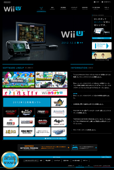 닌텐도의 빼어난 웹디자인에 대해서는 지난 번에도 언급한 적이 있다. Wii U 자체가 가진 화제성 때문에 자주 방문한 점도 있지만 닌텐도의 사이트는 디자인과 구조 등이 보기 쉽고 찾기 쉬우면서도 시각적인 재미를 놓치지 않아 과연 닌텐도라는 소리가 나오도록 만든다. 특히 각 개별 게임의 웹사이트는 플래시의 사용을 점차 줄이고 HTML5 체제로 이행하는 덕분에 비교적 무겁지 않으면서도 풍부한 시청각 자료를 제공하고 있어 플래시 떡칠과 화려함만 추구하다 느리고 정작 정보는 찾기 힘든 다른 게임 소개 사이트들보다 비교 우위에 있다고 말할 수 있다.