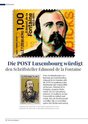 Luxemburg 2023, Briefmarke mit dem Abbild von Edmond de la Fontaine.
