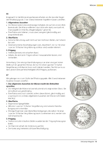 Vergrößerung sichtbar ist, kann noch toleriert werden. Die Münze muss