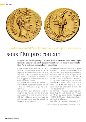 Il s’agit des monnaies liées aux jeux sécu- Les premiers jeux séculaires sous Auguste