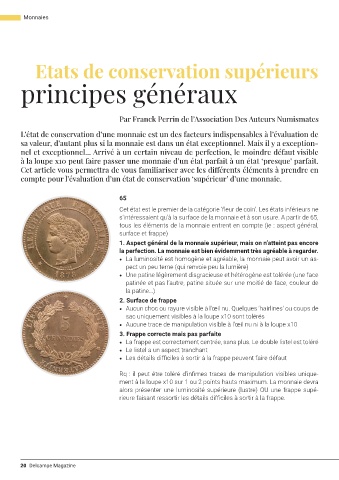 compte pour l’évaluation d’un état de conservation ‘supérieur’ d’une monnaie.