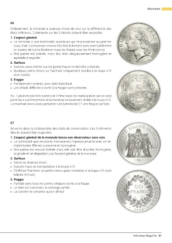 La monnaie devra alors présenter une luminosité ET une frappe parfaite.