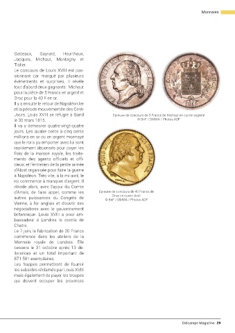 Jours. Louis XVIII se réfugie à Gand Epreuve de concours de 5 Francs de Michaut en cuivre argenté