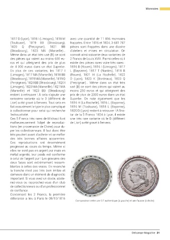 1817 D (Lyon), 1818 I (Limoges), 1818 M avec une quantité de 11 896 monnaies