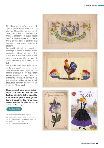 cartes postales brodées mises en