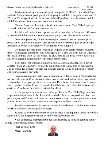 "Le Baudet" Bulletin mensuel du Club Philatélique Ardennais décembre 2024 N° 500