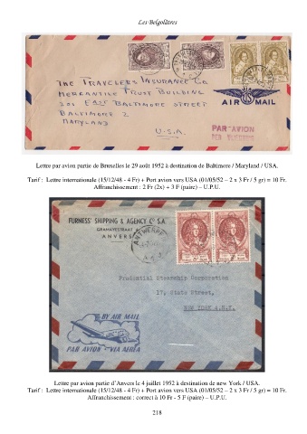 Lettre par avion partie de Bruxelles le 29 août 1952 à destination de Baltimore / Maryland / USA.