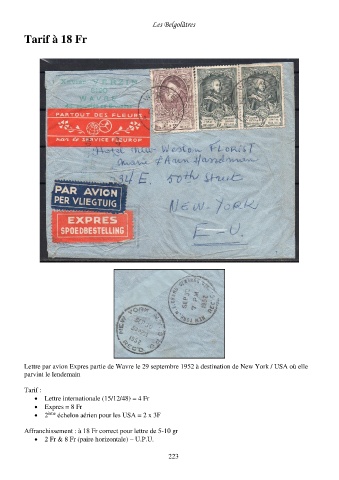 Lettre par avion Expres partie de Wavre le 29 septembre 1952 à destination de New York / USA où elle