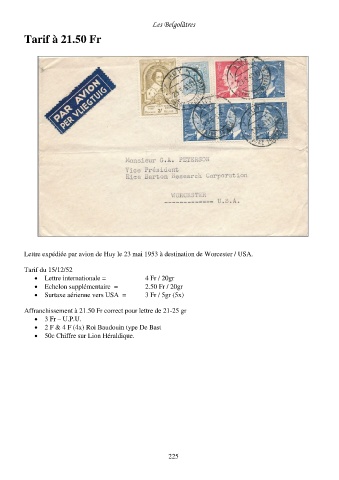 Lettre expédiée par avion de Huy le 23 mai 1953 à destination de Worcester / USA.