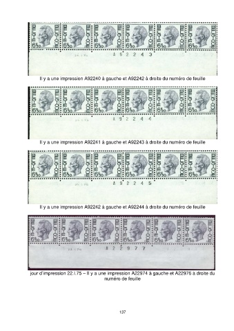 Il y a une impression A92240 à gauche et A92242 à droite du numéro de feuille