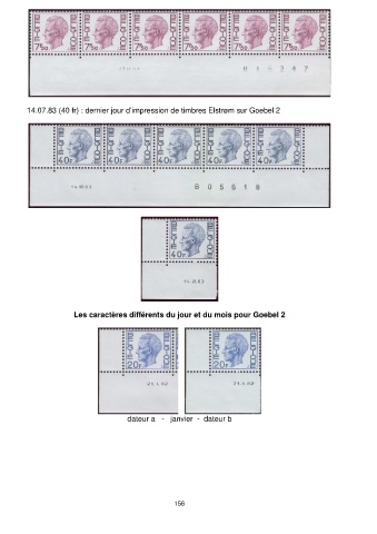 14.07.83 (40 fr) : dernier jour d’impression de timbres Elstrøm sur Goebel 2 Les caractères différents du jour et du mois pour Goebel 2 dateur a - janvier - dateur b 156