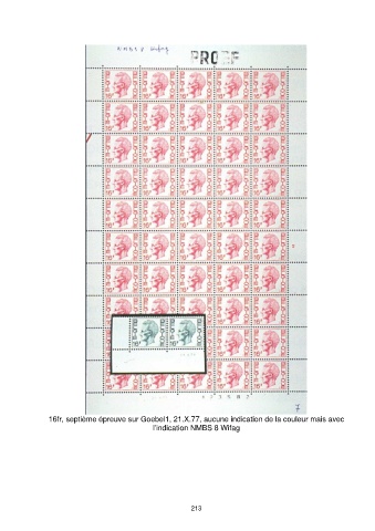 16fr, septième épreuve sur Goebel1, 21.X.77, aucune indication de la couleur mais avec l’indication NMBS 8 Wifag 213