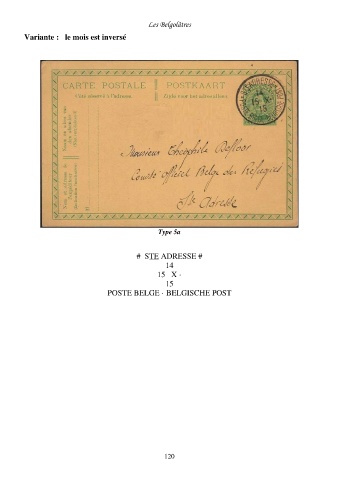 Les Belgolâtres Variante : le mois est inversé Type 5a # STE ADRESSE # 14 15 X · 15 POSTE BELGE · BELGISCHE POST 120