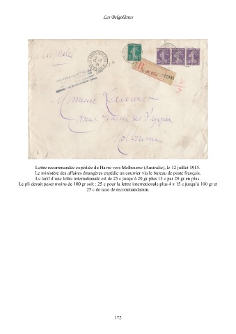 Lettre recommandée expédiée du Havre vers Melbourne (Australie), le 12 juillet 1915.
