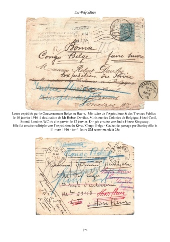 le 10 janvier 1916 à destination de Mr Robert Devilez, Ministère des Colonies de Belgique, Hotel Cecil,