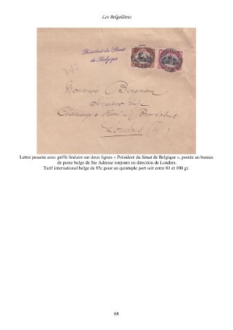 Lettre pesante avec griffe linéaire sur deux lignes « Président du Sénat de Belgique », postée au bureau