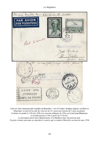 Carte de visite internationale expédiée de Bruxelles 1 vers El Fasher (Soudan Anglais) via Paris et