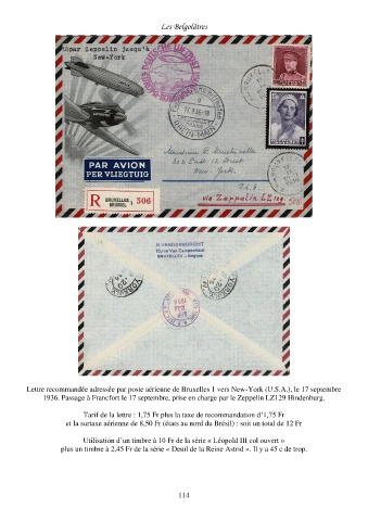 Lettre recommandée adressée par poste aérienne de Bruxelles 1 vers New-York (U.S.A.), le 17 septembre