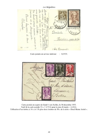 Utilisation d’un timbre à 10 c et 1 Fr plus deux timbres de 50 c de la série « Deuil Reine Astrid ».