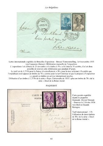 Lettre internationale expédiée de Bruxelles Exposition – Brussel Tentoonstelling., le 6 novembre 1935