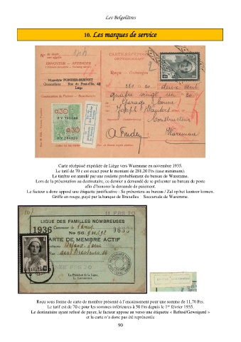 Carte récépissé expédiée de Liège vers Waremme en novembre 1935.