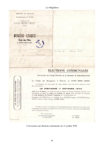 Les Belgolâtres Convocation aux élections communales du 11 octobre 1970. 55