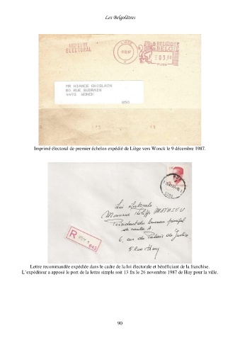 Imprimé électoral de premier échelon expédié de Liège vers Wonck le 9 décembre 1987.