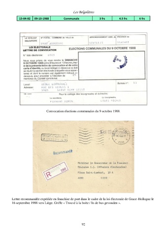 Lettre recommandée expédiée en franchise de port dans le cadre de la loi électorale de Grace-Hollogne le