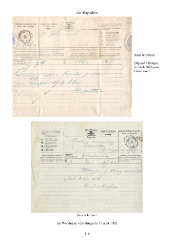 Les Belgolâtres Sans référence Déposé à Bruges le 24-4-1896 pour Grammont. Sans référence De Wenduyne vers Bruges le 19 août 1902 116