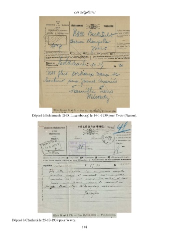 Les Belgolâtres Déposé à Echternach (G-D. Luxembourg) le 14-1-1939 pour Yvoir (Namur). Déposé à Charleroi le 25-10-1939 pour Wavre. 148
