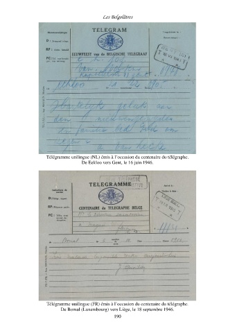 Télégramme unilingue (NL) émis à l’occasion du centenaire du télégraphe.