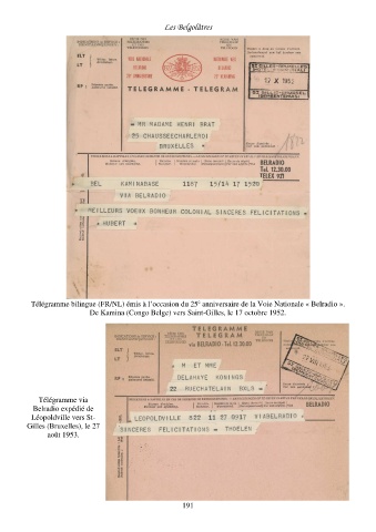 Télégramme bilingue (FR/NL) émis à l’occasion du 25 anniversaire de la Voie Nationale « Belradio ».