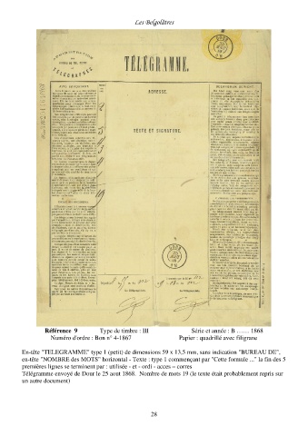 Référence 9 Type de timbre : III Série et année : B …… 1868