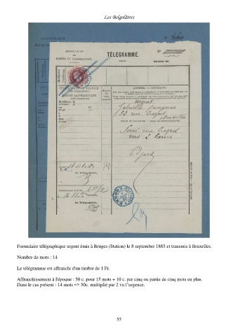 Le télégramme est affranchi d'un timbre de 1 Fr.