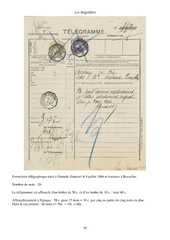 Le télégramme est affranchi d'un timbre de 50 c. et d’un timbre de 10 c. : total 60 c.