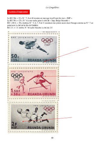 Le RU 50c + 25 c N ° 7, 8 et 48 montre un encrage insuffisant du mot « IMP ».