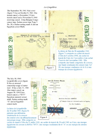 cachet de transit d’Aba du 31 juillet 1941, un cachet de transit du 30 août 1941 au Caire, une marque