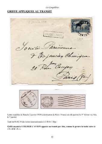 Lettre expédiée de Buta le 2 janvier 1939 à destination de Paris / France où elle parvint le 1 février via Aba