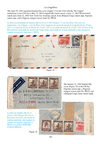 La lettre recommandée de Stanleyville du 29 avril 1943 (Figure 17) vers les États-Unis avec les