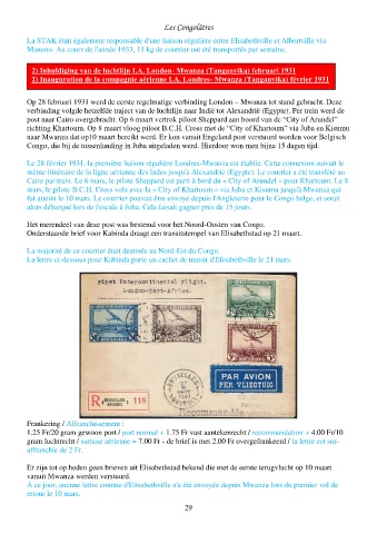 2) Inauguration de la compagnie aérienne I.A. Londres- Mwanza (Tanganyika) février 1931