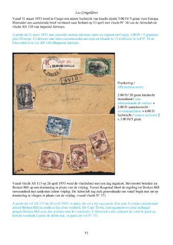 Vanaf 31 maart 1933 werd in Congo een nieuw luchtecht van kracht zijnde 3.00 Fr/ 5 gram voor Europa.