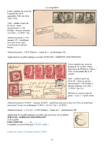 Affranchissement à 10.30 Fr – manque 18.20 Fr - insuffisant pour port avion vers USA, et insuffisant