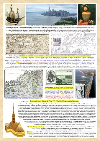 Fiche technique : 15/04/2024 - réf. 21 24 404 - Souvenir philatélique : 500 ans de la découverte de la baie de New-York (la "Terre d'Angoulême") le 17 avril 1524.