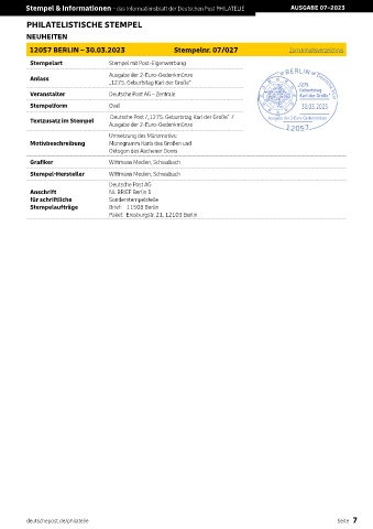 Stempel & Informationen – das Informationsblatt der Deutschen Post PHILATELIE AUSGABE 07–2023