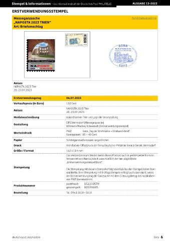 Stempel & Informationen – das Informationsblatt der Deutschen Post PHILATELIE AUSGABE 13–2023