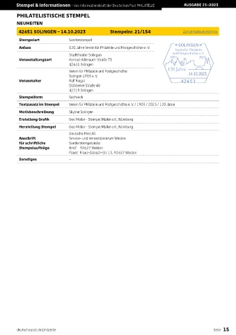42651 SOLINGEN – 14.10.2023 Stempelnr. 21/154 Zum Inhaltsverzeichnis
