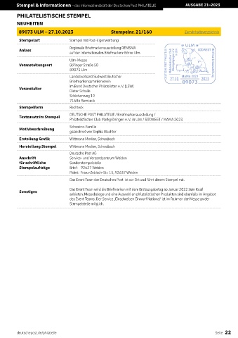 Stempel & Informationen – das Informationsblatt der Deutschen Post PHILATELIE AUSGABE 21–2023