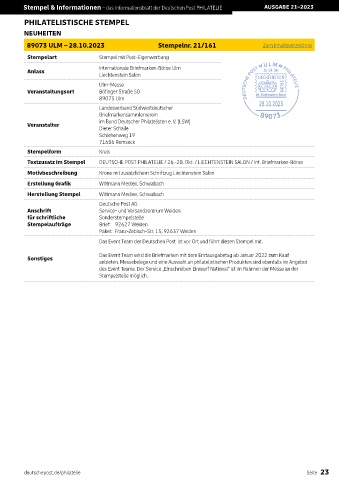 Stempel & Informationen – das Informationsblatt der Deutschen Post PHILATELIE AUSGABE 21–2023